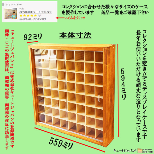 | 商品の特徴 | ゴルフボール コレクション収納ケース アクリル障子付 メープル色塗装。ゴルフボール コレクションケース アクリル障子付 日本製 ディスプレイ。ゴルフボール ディスプレイケース アクリル障子付 ホワイト色塗装 日本。【数量限定500円値下げ】通常価格 15,500円 → 15,000円【サイズ】巾559ミリ 高さ594ミリ 奥行92ミリ。アクリル障子付の収納ケース 未使用製作品です。外枠をオイルステインメープル色塗装。ゴルフボールを64個収納可、コレクションを惹きたてるディスプレイケースです。大事に保管したい皆さまにご満足いただける一品と自負しております。アクリル障子付ケースは3割を超える方がリピート(感謝!)されています。記念品、プレゼントに・・。購入時の注意点:材料は建材を使用していますが、表面は天然木のため色目・木目・節の具合がその都度変わります。製作では裏面の意匠は視覚的に重要視していません。※ゴルフボールスタンドなどを用いて収納(展示)するよう設定しています。●スライド式障子は光線透過率93%の高品質アクリル板3ミリ厚を使用しています。●外枠に木目を活かしたパイン集成材を使用しています。※中桟は固定式で可動はしません。●本商品は、(株)キュートジャパンにより日本国内で製作・販売を一貫して行っています。製作・販売元 株式会社キュートジャパン#ゴルフ#ゴルフボール#コレクションケース#ディスプレイケース#収納棚#収納ケース#ショーケース#キュートジャパン#四毒抜き。ゴルフボール コレクション収納ケース アクリル障子付 メープル色塗装。【マス目寸法】 巾61ミリ 高さ63ミリ 奥行60ミリ。SRIXON XXIO 未使用 48個。PING g430 5番 ユーティリティ。外枠にメルクシパイン集成材・中桟にたわみの無い5.5ミリ厚のラワンベニヤを使用しています。【送料無料】ゴルフクラブ10本セット。ミャクミャク*Titleist Tour Soft ゴルフボールセット。温かみのある色に仕上げました。【美品】smaly 自動返球機能付きゴルフパターマット 3m。PRO SENDR ヤマニ プロセンダー ゴルフ 練習器具。アクリル障子は透明度が高く、大切なコレクションをホコリや傷から守ります。ゆうこさま専用。PRO SENDR ゴルフ用練習器具 箱無し。コレクター様に『こんなの欲しかった!』 そう言わせたい一心で製作しました。HONMA TW-S 6箱 72球 他 未使用品 48球 合計120球。3D Swing Mentor(スウィングメンター)。ありがとうございます。未使用品 永井哲二コーチ考案 ダブルグリップアイアン 練習用具。スカイトラックプラス SkyTrak+ スカイトラック。ご自身用にもおすすめです。【新品】muta ムータマリン クリアビッグトートバッグ ゴルフ レジャー。[値下]EXPUTT EX300D Golf Putting Simulator。天然単板独特の節目・木目の濃淡・接ぎ目が目立つ場合がありますが、構造上問題はありません。値下げ❗️美品‼️MARK&LONA レインウェアセット ゴルフ。スピーダーNXブラック60S キャロウェイ用スリープ。ご了承ください。muta MARINE × AKM ボア セットアップ。(4箱)2025 TITLEIST(タイトリスト)PROV1x (12球入。こちらの商品には、ゴルフボールを固定するスタンドは付属していません。LLADROリヤドロ Lady Golfer。※ (3箱) 2025 TITLEIST Pro V1x ゴルフボール 12球入。引手加工をほどこしていますので開け閉め楽々です。Titleist Pro V1x ゴルフボール 2ダー2025年。スカイトラック パッティング練習機器 ゼロパット zeroputt。長年お使いいただけるよう頑丈な造りとなっています。NIKON COOLSHOT PROⅢ STABILIZED。【TASKGOLF 正規品】3D Swing Mentor(スイング練習機器)。サイズをご確認のうえご購入ください。SWING BALANCER バランス調整器 スイングバランサー。ブリヂストン TOUR B X ゴルフボール 5ダース 新品 イエロー。ご購入された方の『コレ、また欲しい!』の嬉しいご感想を励み(ビタミン剤です!)にして、日々製作を行っております。goold golf rockers ナイロンポンチョ | ||