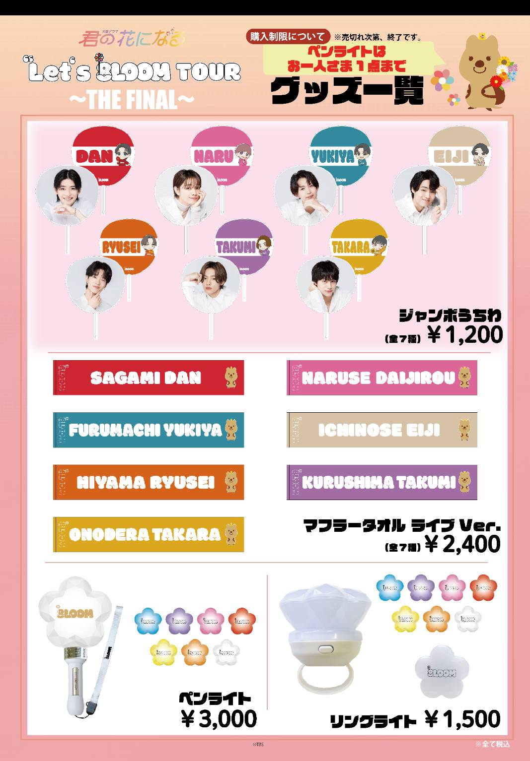 | 商品の特徴 | 君の花になる8LOOM ファンミーティンググッズ。❀━━━━━━━━━━━❀ #君の花になる 公式グッズ第一弾先行受注。TBS系 10月18日火曜 よる10時スタート『君の花になる』POP UP SHOP in。TBS 火曜ドラマ君の花になる 8LOOM ブルーム グッズ 佐神弾 高橋文哉成瀬大二郎 宮世琉弥古町有起哉 綱啓永小野寺宝 山下幸輝・アクリルスタンド▶︎3555・アクリルキーホルダー▶︎1455・ミニキャラアクリルキーホルダー▶︎2999○新品未使用(複数個所持しているものもございます)送料の関係で 3つ から専用つくらせていただきます。ご了承くださいませ…。コメントからお願い致します。※素人保管のため神経質な方はご遠慮ください※ 初期不良はメーカーにお問い合わせください※ご希望がございましたら できるだけ早く発送対応致しますタレントジャンル(その他)···俳優···男性アイドル。君の花になる8LOOM ファンミーティンググッズ。HKT48 神の手アプリ 場空缶 総選挙 2016 特典 生写真。SKE48 神の手アプリ 場空缶 総選挙 2016 生写真 チームE 研究生 | ||
